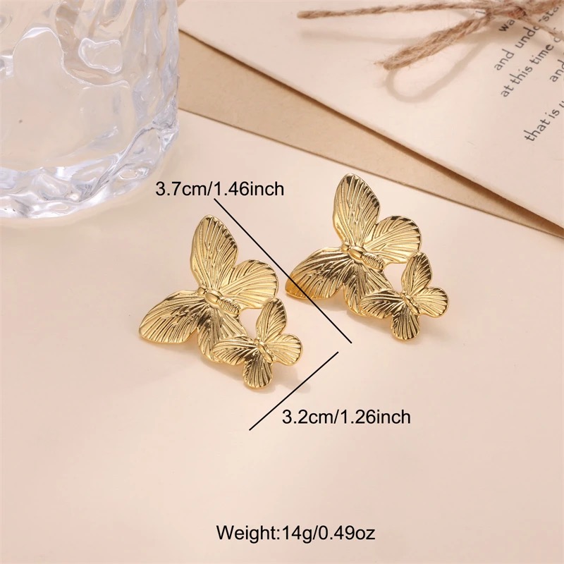 - 1 Pair Gold Butterfly Earrings Elegant Everyday Wear Chic European-and-American Style Earrings